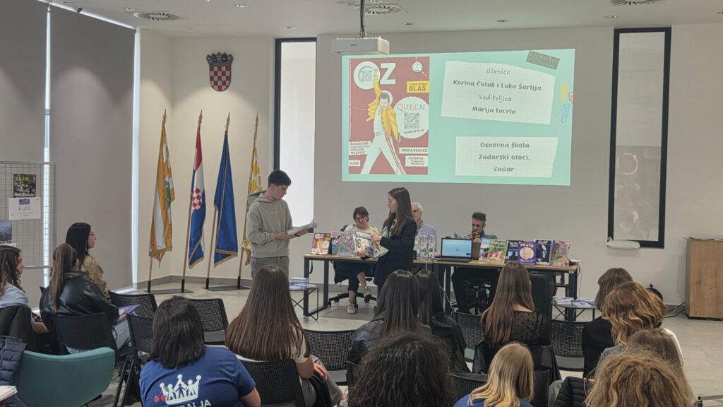 Učenici 8. d razreda, Korina Ćutuk i Luka Šarlija, izvrsno su predstavili list pred članovima Državnog povjerenstva kao glavni urednici. Ponosni smo na njih jer su pokazali odlične prezentacijske vještine, sigurnost u nastupu te veliki trud i predanost koje su uložili u stvaranje našega školskog lista.